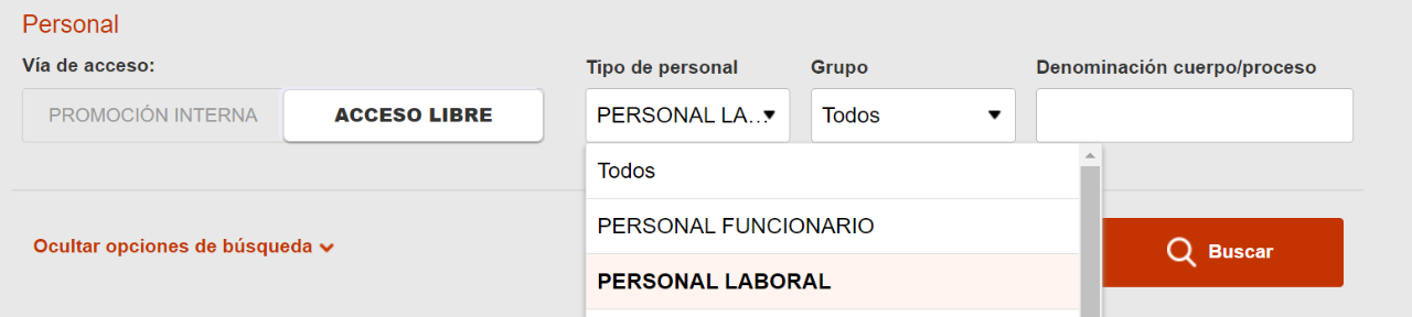 Para acceder a la información sobre las convocatorias para Personal Laboral incluidas en el IV Convenio Único convocadas por los distintos Departamentos Ministeriales accede al Buscador de Convocatorias del Punto de Acceso General, seleccionando la opción "Tipo de Personal" como "Laboral".